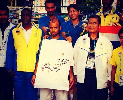 به گزارش روزنو، بازیکنان تیم ملی فوتوالی ایران که ترکیبی است از حرکات نمایشی فوتبال و سپک تاکرا، بعد از اینکه در بازی های آسیایی توانستند به فینال برسند و مدال نقره را برای کشورمان کسب کنند، این مدال را به احترام مرتضی پاشایی خواننده پاپ کشورمان که در سی سالگی بر اثر ابتلا به سرطان معده درگذشت به این خواننده محبوب هدیه دادند.