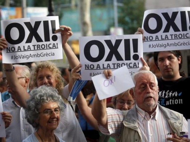 یونان در روز یکشنبه شاهد برگزاری همه پرسی بود. سوال این همه پرسی این بود که آیا با پیشنهادات اتحادیه اروپا و صندوق بین المللی پول برای ریاضت اقتصادی در مقابل کمک اقتصادی، موافق هستید یا خیر؟ دولت از مردم خواسته بود به گزینه نه رای بدهند.