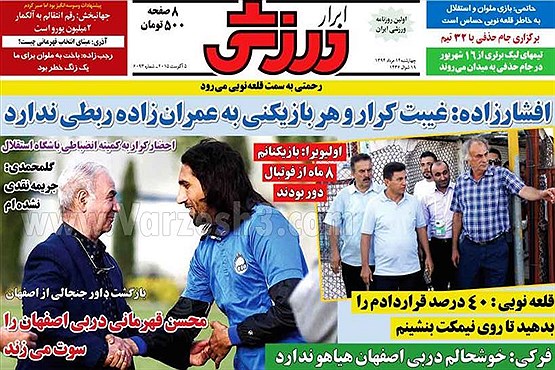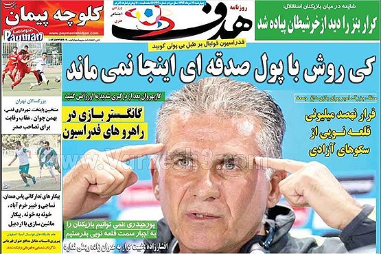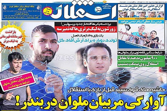 روزنو :هفته دوم رقابت های لیگ برتر فوتبال ، حاشیه سازی های کرار برای استقلال، بحث بر سر نرفتن یا رفتن مهدی رحمتی به سمت قلعه نویی در دیدار استقلال و ملوان، حاشیه های دیدار استقلال و ملوان و همچنین دربی تبریز و ... عناوین و تیترهای امروز روزنامه های ورزشی است که در ادامه می بینید:
