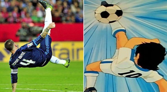 کاپیتان رئال مادرید پس از گلی که مقابل سویا به ثمر رساند، درست همانند سوباسا دچار آسیب دیدگی شد.در این دیدار، سرخیو راموس، کاپیتان رئال مادرید گل نخست رئال را با ضربه قیچی برگردان وارد دروازه سویا کرد. البته او در زمان پایین آمدن، با کتف به زمین خورد و دچار آسیب دیدگی شد. این صحنه، یادآور گل سوباسو، بازیکن تیم شاهین در کارتون فوتبالیستها بود که او نیز پس از گلی که به همین شکل به ثمر رساند، از همین ناحیه آسیب دید.