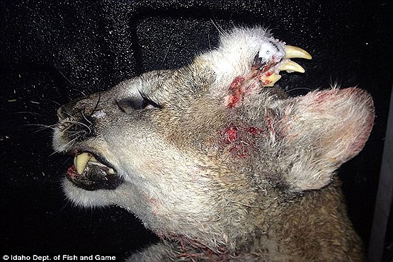 این شیر در جنوبی ترین قسمت آیداهوی آمریکا یافت شده است. پشت سر این ماده شیر کوهستانی یک ردیف دندان تیز وجود دارد. یک شکارچی بومی پس از مشاهده این شیر عجیب الخلقه به شدت می ترسد و به سمت وی تیراندازی می کند که باعث کشته شدن این ماده شیر می شود.