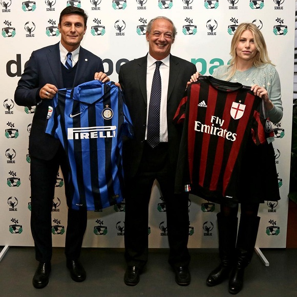 لیگ فوتبال سری A ایتالیا بزودی شاهد بازی دو تیم همشهرآث میلان و اینترمیلان خواهد بود. از همین روی اعضای این باشگاه ها ( خانم سیلویا برلوسکونی آث میلان و خاویر زانتی اینتر میلان) قبل از این بازی این عکس را گرفتند.