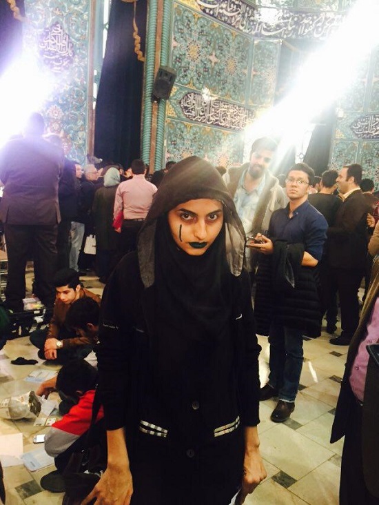 روزنو :چهره عجیب دختر جوان در صف رای گیری در حسینیه ارشاد توجه دیگر رای دهندگان را به خودش جلب کرد.