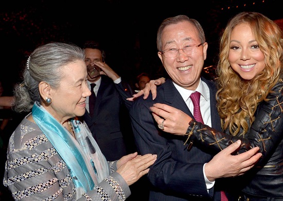 بان کی مون دبیر کل سازمان ملل در یک مهمانی شرکت کرد.در این مهمانی که در لس آنجلس برگزار شد، ماریا کری - خواننده زن مشهور- نیز حضور داشت.