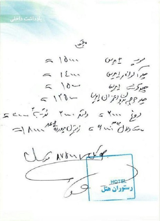 وی افزود: در فاکتوری که برایمان ارسال شده، سه داور مجموعا 2 نوشابه، یک دوغ و یک دلستر به اضافه 6 زیتون پرورده سفارش دادهاند. سرپرست تیم به ما گفت که چرا داورتان یک نوشابه و سه زیتون پرورده اضافی سفارش دادهاند.