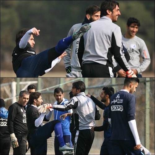 تصویری از تمرین روز پنجشنبه استقلال منتشر شده که جالب است. تصویری از شوخی جابر انصاری با مهدی رحمتی. جابر، گلزن خوب استقلال ، حسابی تحت تاثیر فیلم های بروس لی قرار گرفته و فنون ورزش های رزمی را روی مهدی رحمتی اجرا کرده است. البته به نظر این شوخی ها خیلی هم به مذاق رحمتی خوش نیامده بود!