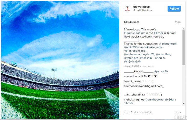 روزنو :اکانت رسمی اینستاگرام فیفا آزادی را به عنوان ورزشگاه کلاسیک هفته انتخاب کرد.
