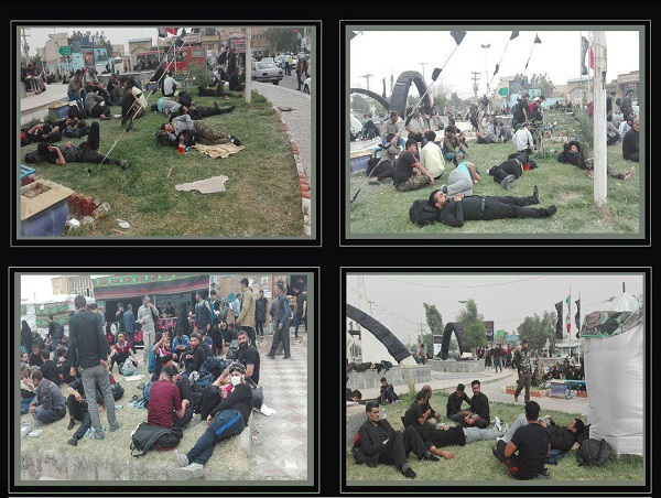 مسافران اربعین که به خاطر نداشتن ویزا از مرز بازگردانده شدند و در یکی از میادین مهران منتظرند.