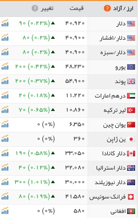 دلار آمریکا نیز با افزایش ۹ تومان نسبت به روز گذشته به قیمت ۴ هزار و ۹۲ تومان رسید.