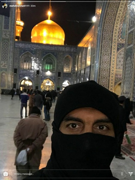 پوشش عجیب مهدی رحمتی در حرم امام رضا (ع) + عکس