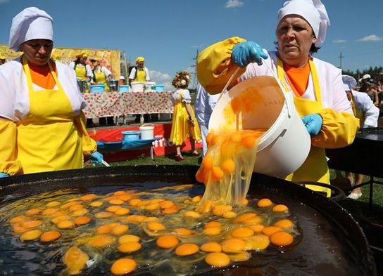 در جشنواذه فرهنگ سنتی بزرگترین نیمروی دنیا در روسیه پخته شد.