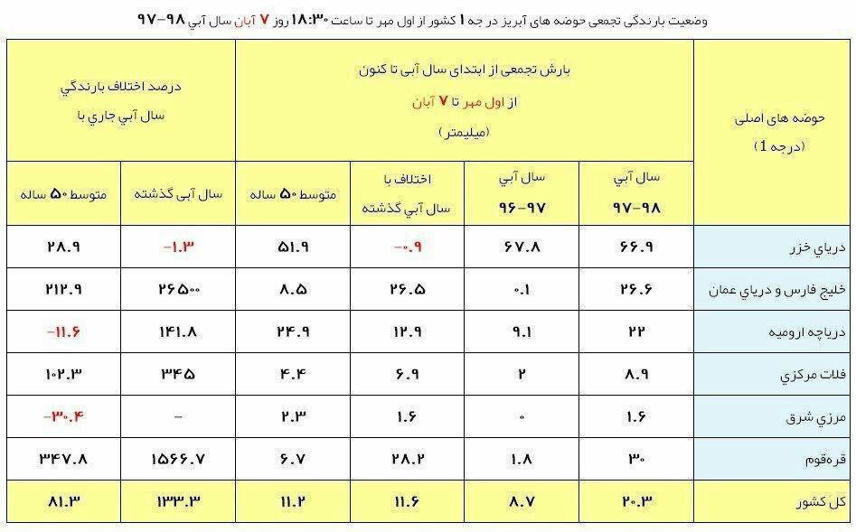 بارش ها در مقايسه با سال گذشته رشد ۲ برابر داشته است. جدول بارش‌ها به شکل زیر است: