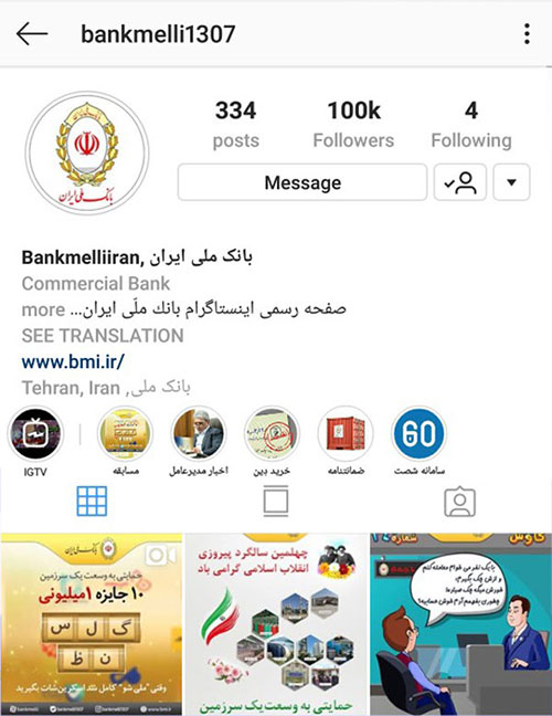 اینستاگرام بانک ملی ایران 100 هزار تایی شد