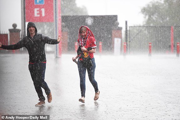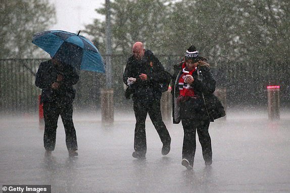 اما تصاویر نشان می دهد باران شدیدی در شهر منچستر آغاز شده و این موضوع فضا را برای برگزاری این دیدار دشوار کرده و عبور و مرور برای هواداران در مسیر ورود به استادیوم سخت به نظر می رسد. ممکن است با ادامه این روند، امکان برگزاری دربی منچستر وجود نداشته باشد و اگر این باران سیل آسا شدت گیرد، شاید در نهایت حکم تعویق این دیدار حساس صادر شود.