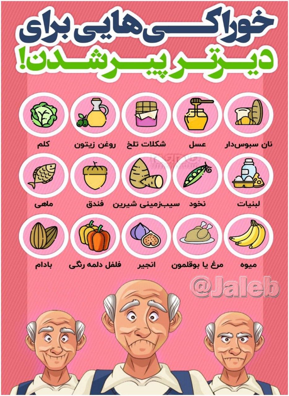 خوراکی هایی برای دیرتر پیر شدن + اینفوگرافیک