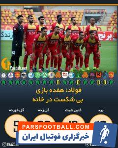 شاگردان جواد نکونام در تیم فولاد در ۱۷ بازی آخرشان در بازی های خانگی هیچ شکستی نداشتند. آخرین شکست خانگی این تیم به بازی با پرسپولیس بر می گردد.
