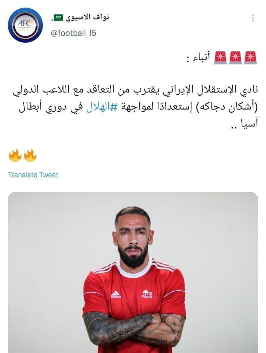 نواف الاسیوی، خبرنگار مطرح عربستانی، مدعی شد که استقلال به دنبال جذب اشکان دژاگه است.