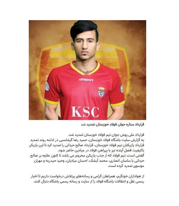 روزنو :صالح حردانی مدافع راست جوان فولاد، قراردادش را با این تیم تمدید کرد تا بدین شکل داستان حضور او در استقلال به صورت رسمی منتفی شود.