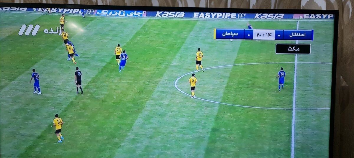 نکته عجیب در پخش تلویزیونی مصاف تیمهای استقلال و سپاهان این بود که با توجه به تعداد زیاد تابلوهای تبلیغاتی مقابل جایگاه، تصویربرداران تلویزیونی طوری از زمین مسابقه فیلمبرداری میکردند که قسمت بالای قاب تصویر، حداکثر الایدیهای تبلیغاتی پایین، نزدیک به دور زمین را نشان بدهد و این موضوع باعث شده بود محل قرار گرفتن زمانسنج و اسامی دو تیم استقلال و سپاهان در اغلب وسط زمین مسابقه واغلب اوقات جایی قرار بگیرد که توپ در جریان بازی بود! این موضوع از نگاه کاربران اینترنتی در فضای مجازی پنهان نماند و خیلی سریع به این موضوع واکنش نشان دادند.
