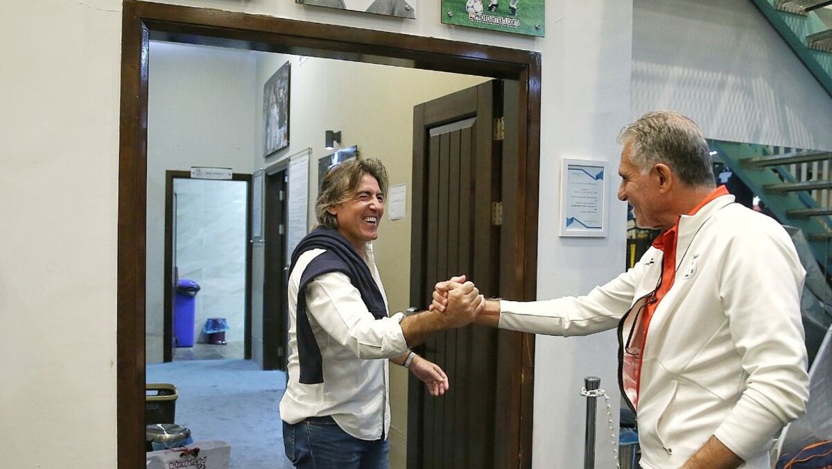 کیروش برخورد گرم و صمیمانهای با ساپینتو داشت و این دو نفر درباره شرایط بازیکنان استقلال به صحبت پرداختند.