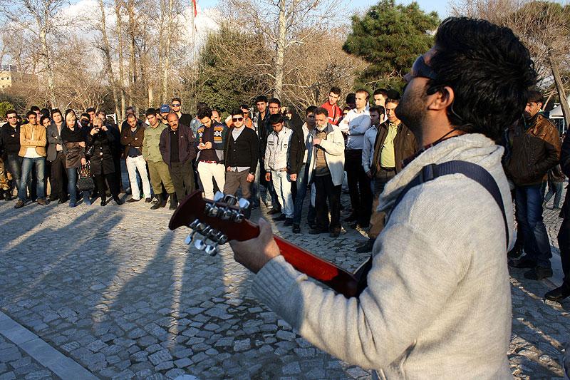 مجید خراطها که در هفته های گذشته اجرای کنسرت اش را در سالن اریکه ایرانیان روی صحنه برد، در این اجرای خیابانی که در محوطه باز پارک دانشجو انجام شد، با استقبال مردم رو به رو شد.