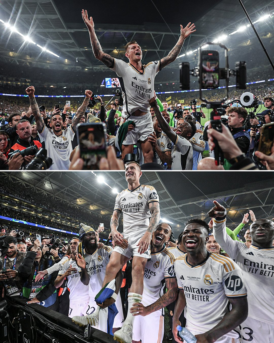 آخرین حضور هافبک آلمانی رئال مادرید در فوتبال باشگاهی، با یک پاس گل همراه شد تا او برای ششمین بار به عنوان قهرمان لیگ قهرمانان شناخته شود. تونی کروس با درخشش در بازی آخر خود در رئال مادرید اکنون به تیم ملی آلمان میرود تا دوران فوتبالش را به پایان برساند. بازیکنان رئال مادرید به نشانه احترام به کروس با ثبت تصاویری ماندگار در کنار هوادران لحظات فراموشنشدنی برای او رقم زدند.