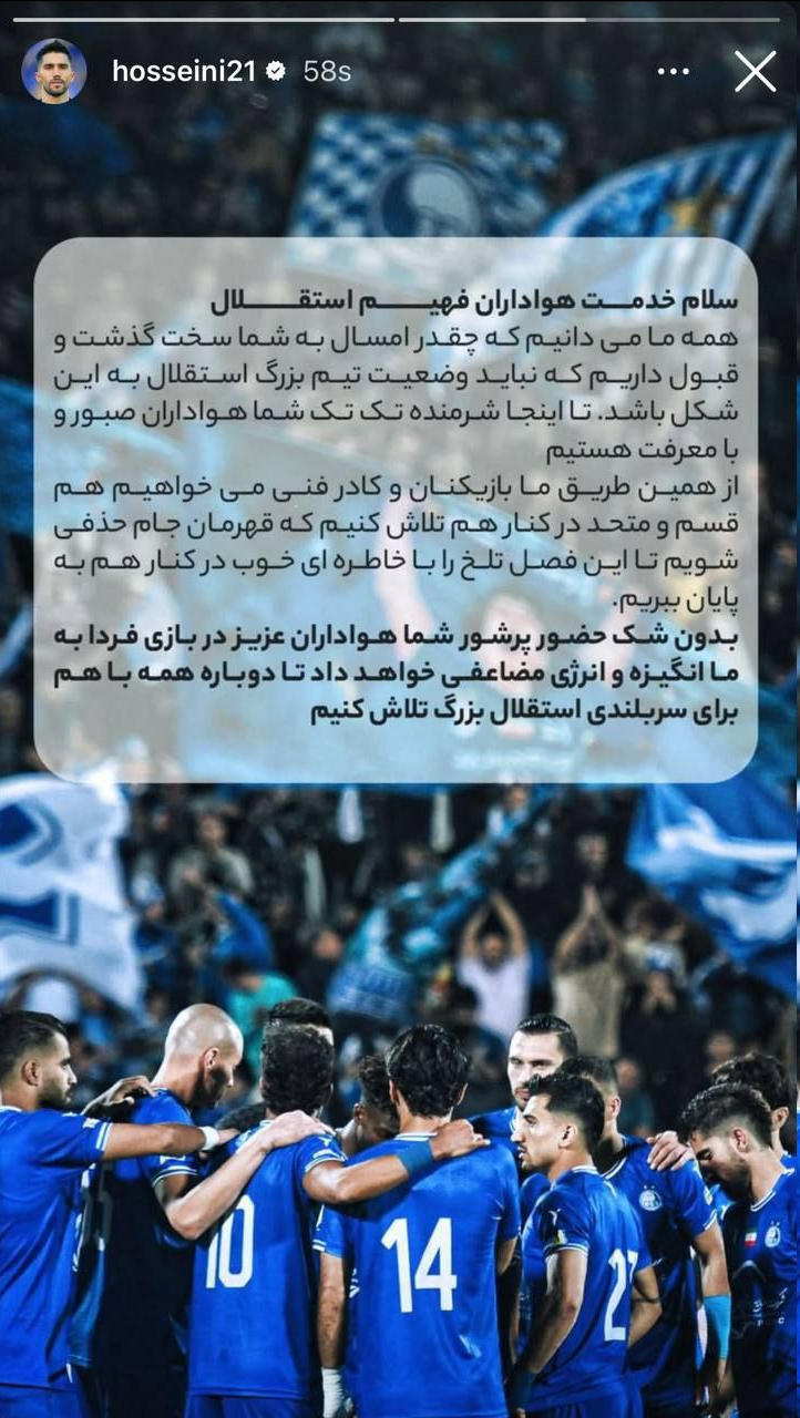 بازیکنان استقلال استوری مشترکی در اینستاگرام منتشر کردند.