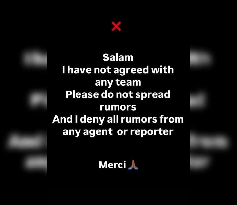 با این حال دقایقی قبل خود بیفوما با انتشار یک استوری این ادعا را به طور کامل تکذیب کرده و خبر هر گونه توافق با باشگاههای دیگر را دروغ خوانده است. بیفوما در این استوری نوشت: من با هیچ تیمی به توافق نرسیدم، لطفا شایعه درست نکنید. من تمام شایعات را تکذیب میکنم.