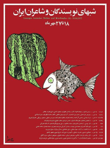 پوستر شبهای نویسندگان و شاعران،که نام دانشور به عنوان اولین سخنران در آن نوشته شده است
