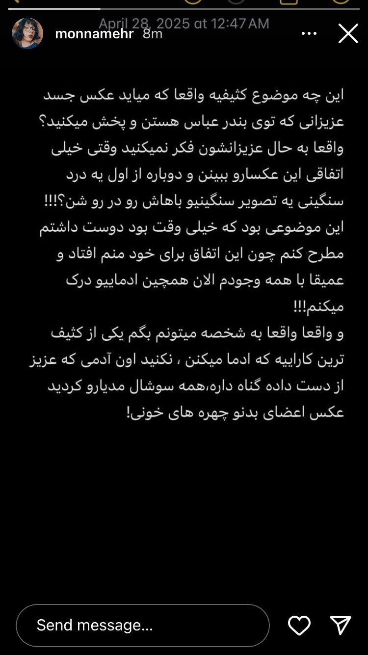 واکنش تند مونا مهرجویی به انتشار تصاویر جانباختگان بندرعباس