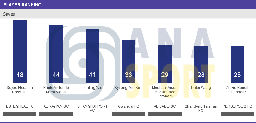 همچنین سید حسین حسینی دروازهبان استقلال، با ۴۸ مهار موفق در صدر جدول بیشترین مهار موفق این رقابتها قرار دارد و الکسیس گندوز دروازهبان پرسپولیس با ۲۸ مهار موفق در رتبه ششم قرار دارد. حسینی همچنین با ۴ کلین شیت در رده دوم بیشترین کلین شیت در این رقابتها قرار دارد.