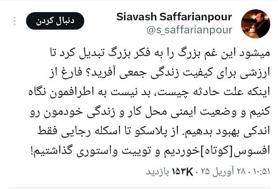 توئیت متفاوت سیاوش صفاریانپور در فضای مجازی با واکنشهای متفاوتی همراه بود.