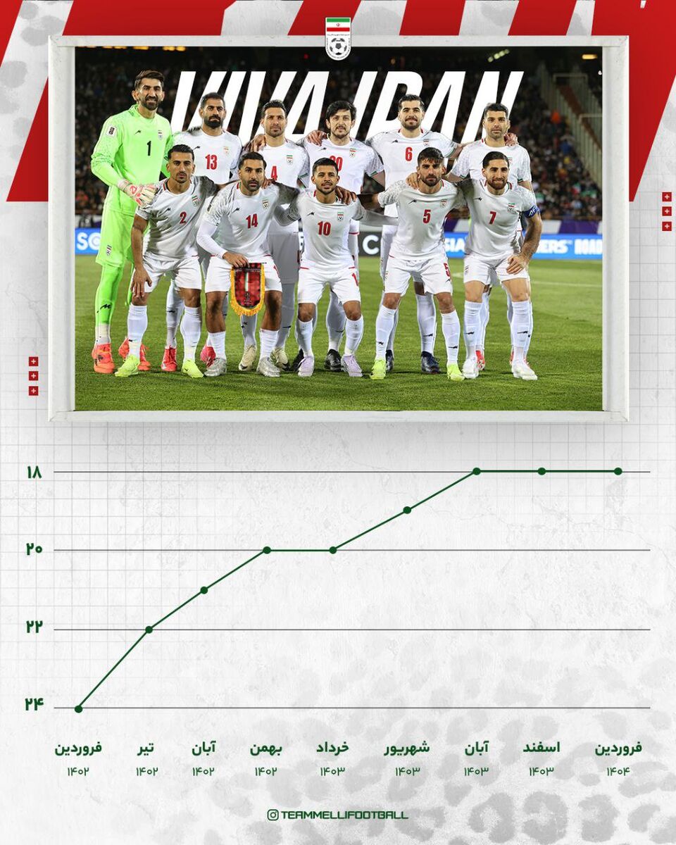 قلعه‌نویی تیم ملی را در رتبه بیست و چهارم رنکینگ فیفا تحویل گرفت و حالا بعد از گذشت نزدیک به دو سال، او در هجدهم جهان ایستاده است.