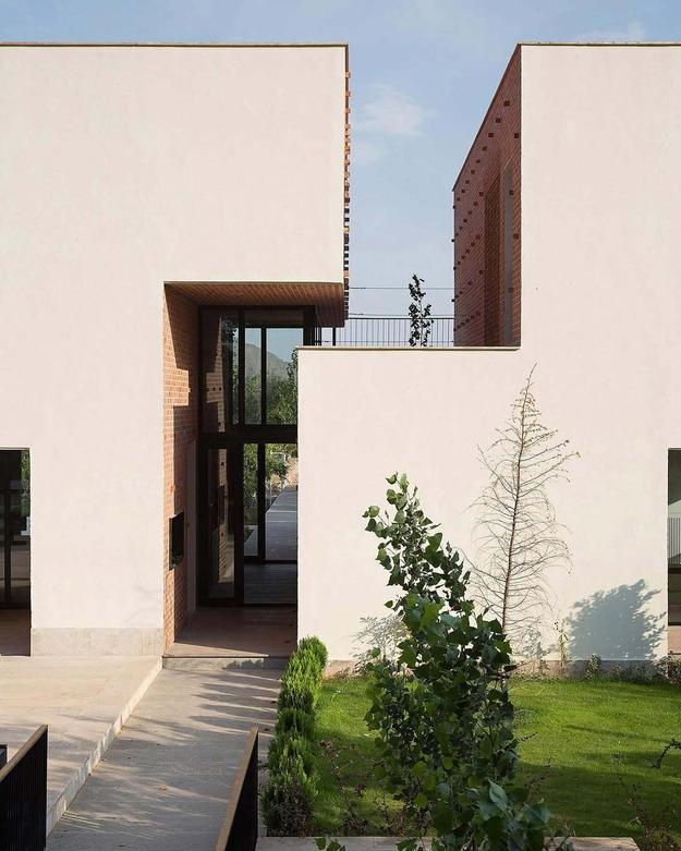 با قدم گذاشتن به داخل، گودال باغچهای ما را به سوی بنایی رازآلود هدایت میکند. ساختمانی که در ابتدا فهم روشنی از آن نیست، اما دو گشودگی عمیق در دل آن، تکهای از آسمان را به قاب میگیرد و با رقص نور و سایه، هر لحظه چهرهای متفاوت از خود به نمایش میگذارد، گویی ما را به کشف رمز و رازهایش فرامیخواند.