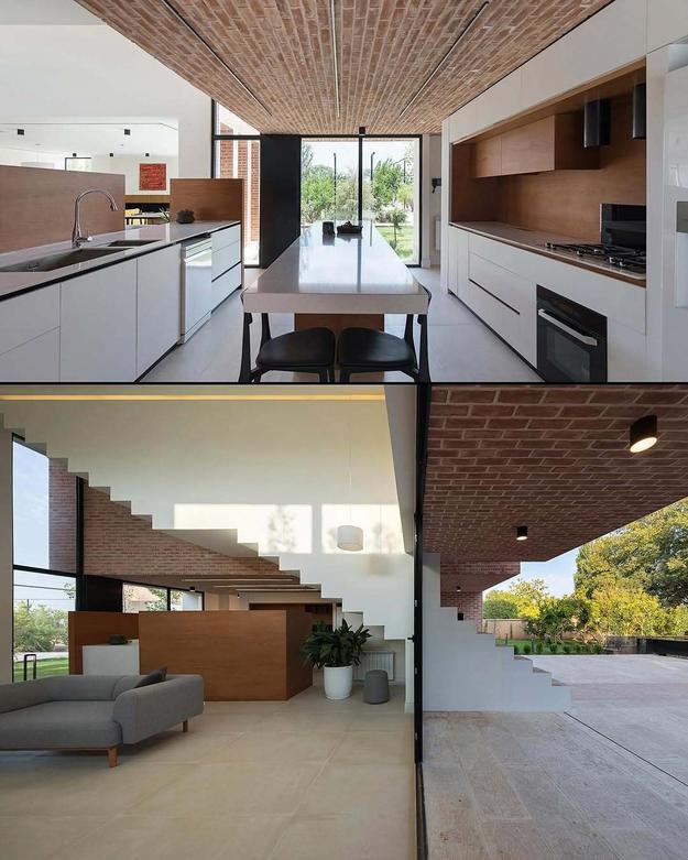 فضاهای داخلی خانه، گویی در میان همین شکافهای هوشمندانه متولد شده و تکثیر یافتهاند. هستهای متراکم از آجر که با برشهای ظریف، روایتی از احساسات و تجربههای گوناگون را از درون خود بازگو میکند.