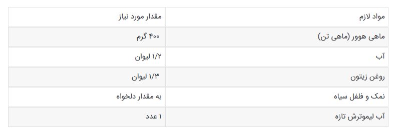 مواد لازم برای تن ماهی خانگی برای ۳ نفر