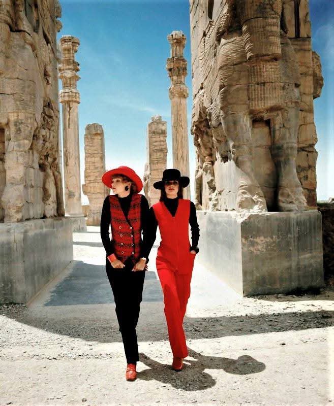 روزنو :تصویری از مدل های خارجی مجله ووگ در تخت جمشید، سال ۱۳۴۸ خورشیدی را مشاهده کنید.
