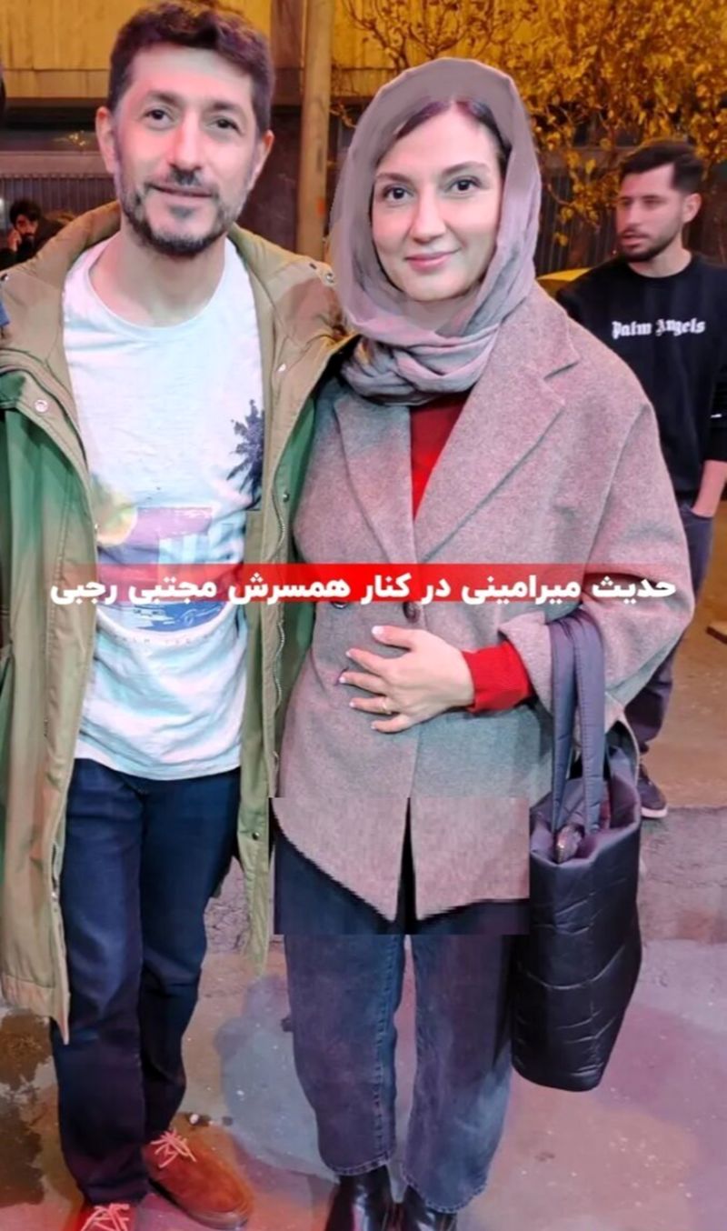 ژست عاشقانه حدیث میرامینی و همسرش مجتبی رجبی