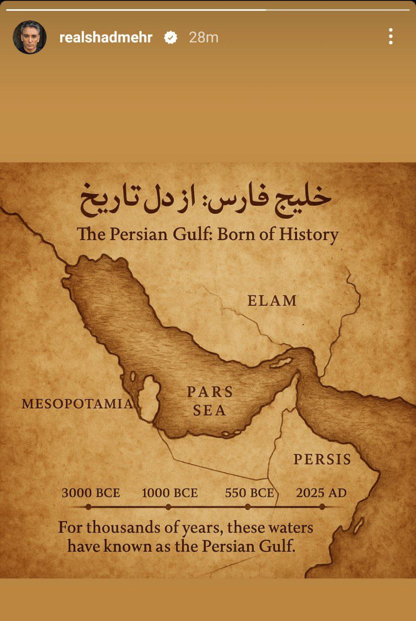 برترینها: شادمهر عقیلی با انتشار یک استوری به تصمیم احتمالی ترامپ برای تغییر نام خلیجفارس اعتراض کرد.