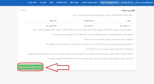 دستورالعمل اجرایی تسهیلات کمکودیعه مسکندستورالعمل اجرایی این تسهیلات مطابق با قوانین جدید و بر اساس مصوبات هیئت عالی بانک مرکزی و شورای پول و اعتبار تنظیم شده است.در این دستورالعمل، بهطور دقیق شرایط متقاضیان و نحوه پرداخت تسهیلات تعیین شده است. بهطور مثال، متقاضی باید فاقد ملک مسکونی و تسهیلات جاری در بخش مسکن باشد.همچنین، ثبتنام و استعلامها باید مطابق با قوانین سامانه سمان انجام شود.مراحل ثبتنام و مدارک مورد نیازمستأجران برای ثبتنام باید به سامانه saman.mrud.ir مراجعه کنند و اطلاعات خود را وارد کنند.برای تکمیل مدارک و ضامنین نیز مهلت ۱۵ روزه تعیین شده است. در صورت عدم تکمیل مدارک در این مدت، درخواست متقاضی توسط بانک رد خواهد شد.سقف وام ودیعه مسکن برای مناطق مختلفبراساس قوانین، وام ودیعه مسکن در تهران ۲۷۵ میلیون تومان، در مراکز استانها ۲۱۰ میلیون تومان، و در سایر شهرها ۱۴۰ میلیون تومان است.