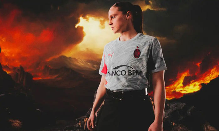 در این کیت، نوارهای سنتی با طرح شعلههای آتش و نشان قرمز آتشین تزئین شدهاند که تفسیری مدرن از ریشههای تاریخی باشگاه ارائه میدهد و به قول پوما، یک کیت جهنمی برای بازیکنان و هواداران خلق کرده است. این طراحی جسورانه که برای اولین بار نشان باشگاه را تکرنگ سفید به نمایش میگذارد، میلان را بهعنوان تیمی پرشور و آتشین معرفی میکند.