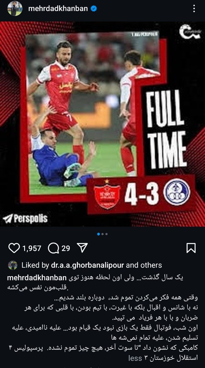 مهرداد خانبان در سالروز این کامبک، پستی احساسی در اینستاگرام منتشر کرد.