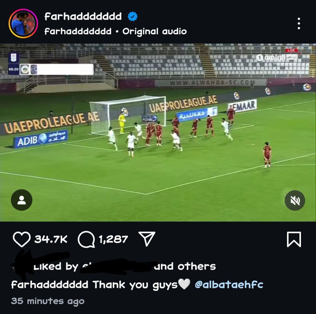 با این حال بعد از شکست امروز البطائح مقابل الوحده، فرهاد مجیدی پست معناداری در صفحه اینستاگرامی خود منتشر کرده است. فرهاد در این پست ویدیویی از عملکرد خود در تیم اماراتی منتشر کرده و نوشته است: ممنون بچهها!