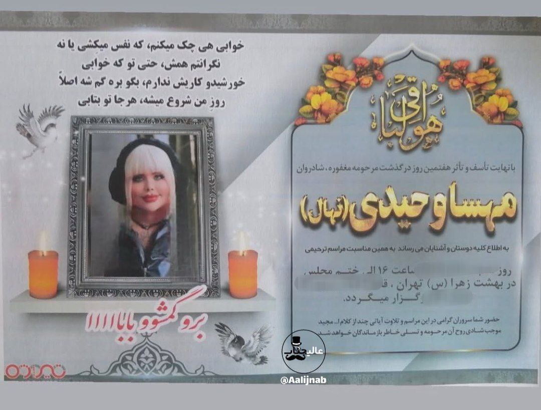 برترینها: چند روز پیش مهسا وحیدی بلاگر شناخته شده با نام نهال که در ویدیوهای طنز و برنامههای گفتوگو محور شناخته شده بود، در گذشت.