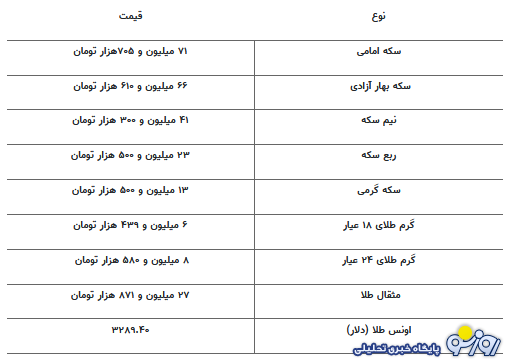 گزارشها حاکی از آن است که هر قطعه سکه امامی با کاهش ۳۸۵ هزار تومانی، ۷۱ میلیون و ۷۰۵ هزار تومان شد.