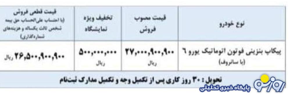 به گزارش روز نو، شرایط طرح فروش پیکاپ فوتون با قیمت قطعی خرداد ۱۴۰۴: