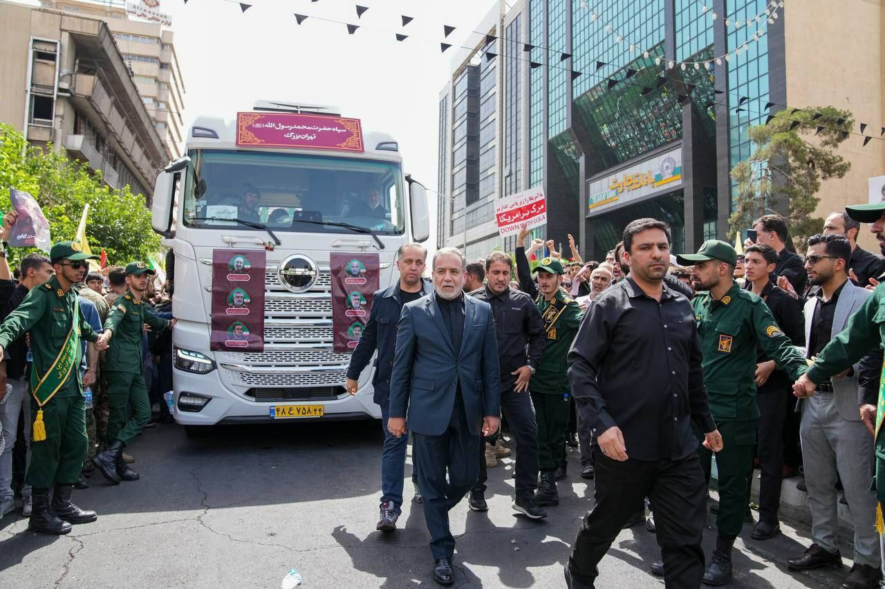 حرکت عراقچی در جلوی کامیون حامل پیکر شهدا