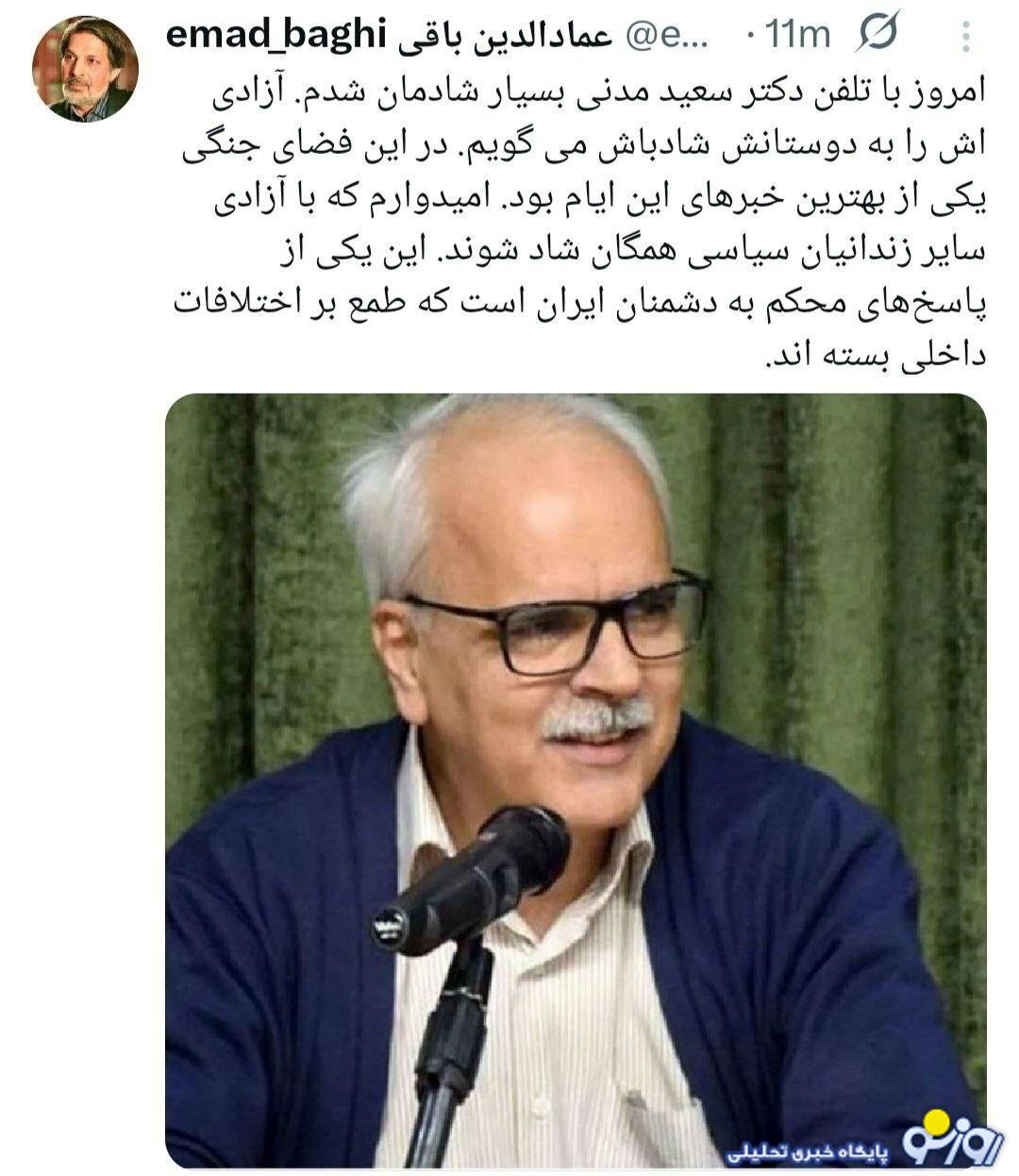 عماد الدین باقی گفته، سعید مدنی از زندان آزادشده است درسته؟