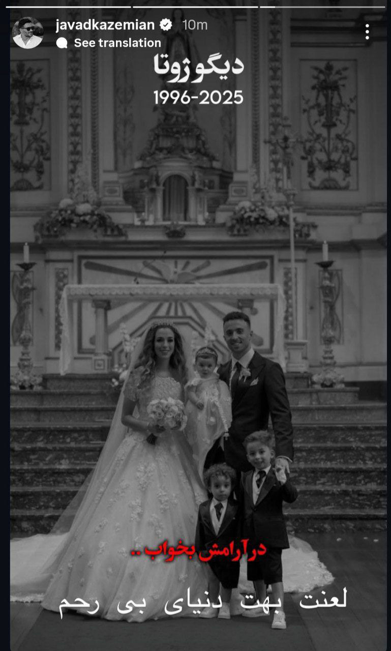 برترینها: جواد کاظمیان، پیشکسوت محبوب پرسپولیس با انتشار یک استوری به درگذشت دیوگو ژوتا، ستاره پرتغالی باشگاه لیورپول واکنش نشان داد.