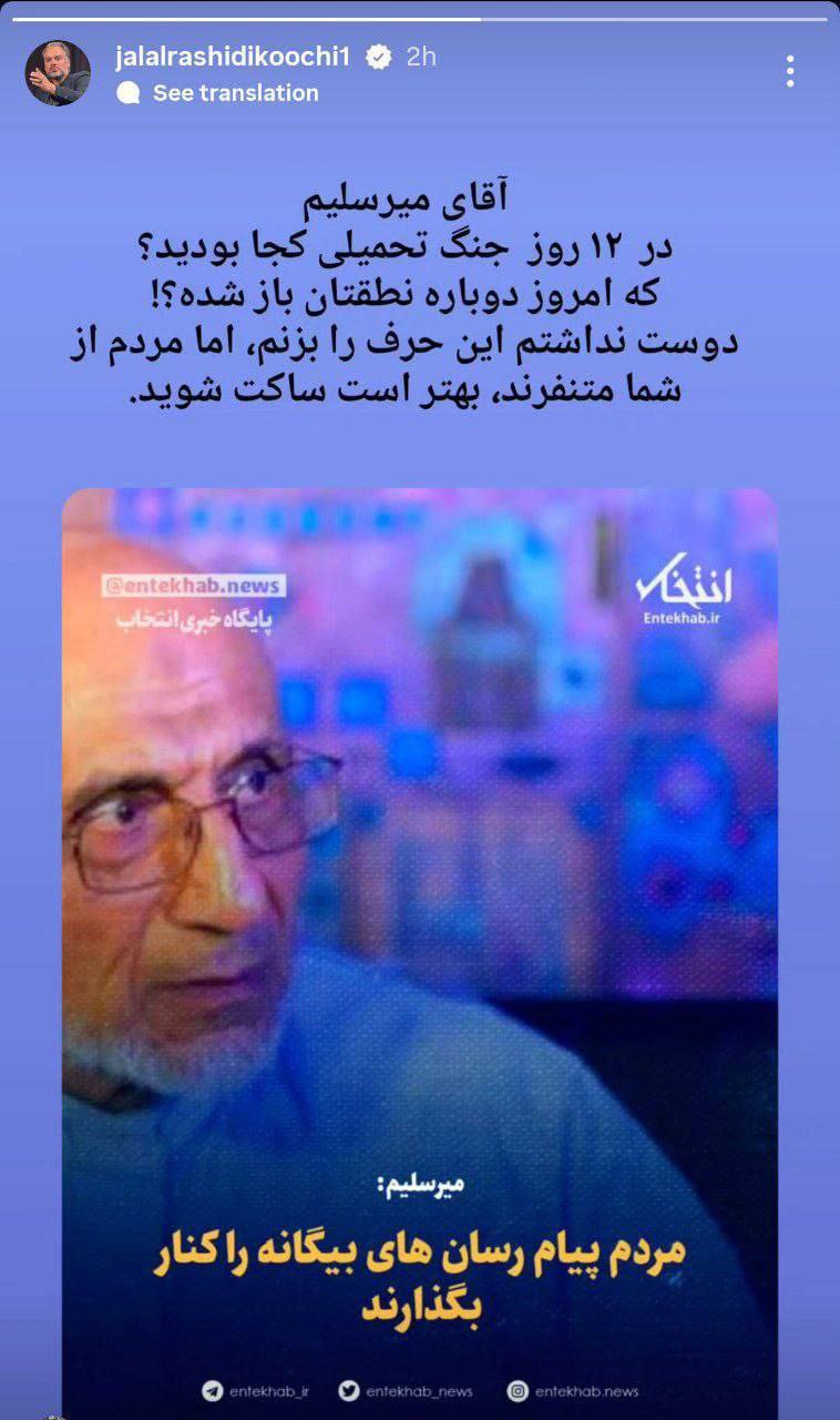 رشیدی کوچی: آقای میرسلیم در جنگ اخیر کجا بودید؟